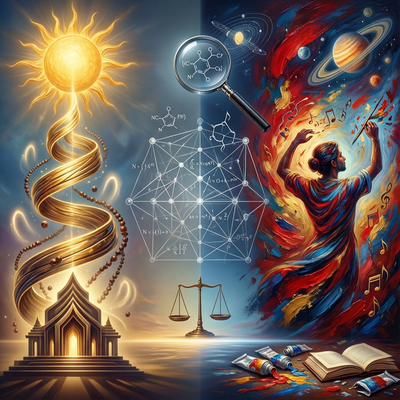 Их конфликт часто неизбежен, когда одна система претендует на всевластие. Церковь, сжигающая Галилея, — это попытка религии подчинить науку. Вульгарный сциентизм, объявляющий веру «опиумом», — это ответная попытка науки заменить религию. А идеологический контроль над искусством — всегда смерть для него. Но гармония возможна, когда они признают суверенитет друг друга: наука показывает устройство вселенной, религия предлагает этический кодекс для жизни в ней, а искусство наполняет эту жизнь смыслом и красотой, доступными чувству.